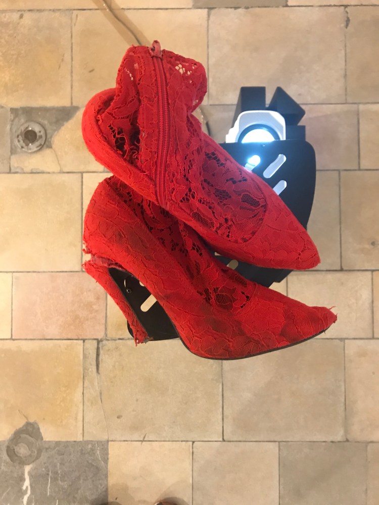 The foot wear (red high heels) was an interpolation of the traditional Tarboosh (fez) that I put on display as broken heels, the highest part of the installation.